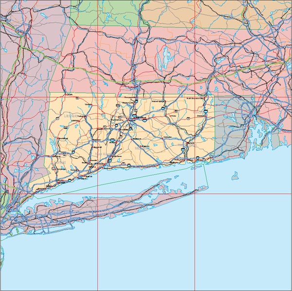 ![]() Detail view of EPS Vector Map of Connecticut - the land fill color is switched on. The EPS Vector map for Connecticut has 24 layers which may be individually modified or removed. Select the Vector only EPS map of Connecticut option to download this style map. |