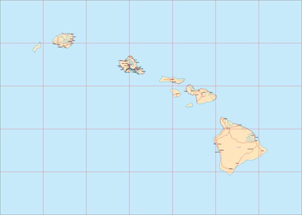 ![]() Detail view of EPS Vector Map of Hawaii - the land fill color is switched on. The EPS Vector map for Hawaii has 13 layers which may be individually modified or removed. Select the Vector only EPS map of Hawaii option to download this style map. |