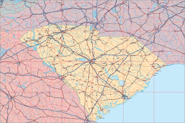 | Map identification: | South Carolina | Projection system: | Geographic / Plate Carree |